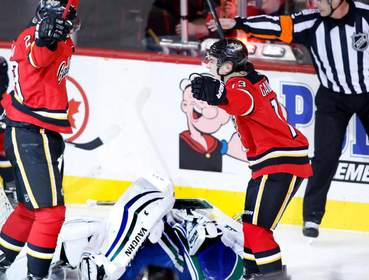 On a night when a loss would have dropped Calgary out of a playoff spot, the Flames instead pull even with the Canucks— although Vancouver holds a game in hand.