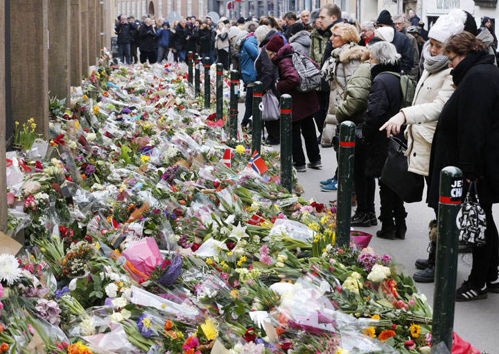 Denmark’s prime minister Helle Thorning-Schmidt said there was no indication that the gunman was part of a wider cell, but gave no evidence for that claim. She joined Danish Crown Prince Frederik, foreign dignitaries and some 30,000 people Monday night to honour the victims outside the Krudttoenden cultural centre.