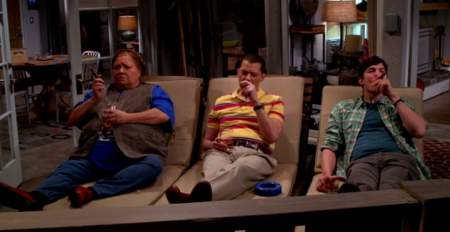 All this she explained midway in the episode as she stopped in at his old homestead, the posh beach-front digs still occupied by his brother Alan (series veteran Jon Cryer) and Walden, the subsequent owner of the house (played by Ashton Kutcher, who joined the show after Sheen left).