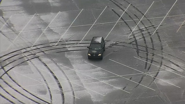A news helicopter captured the driver of the black Mercedes as he slid around the lot for several minutes before parking his car and walking into the mall.