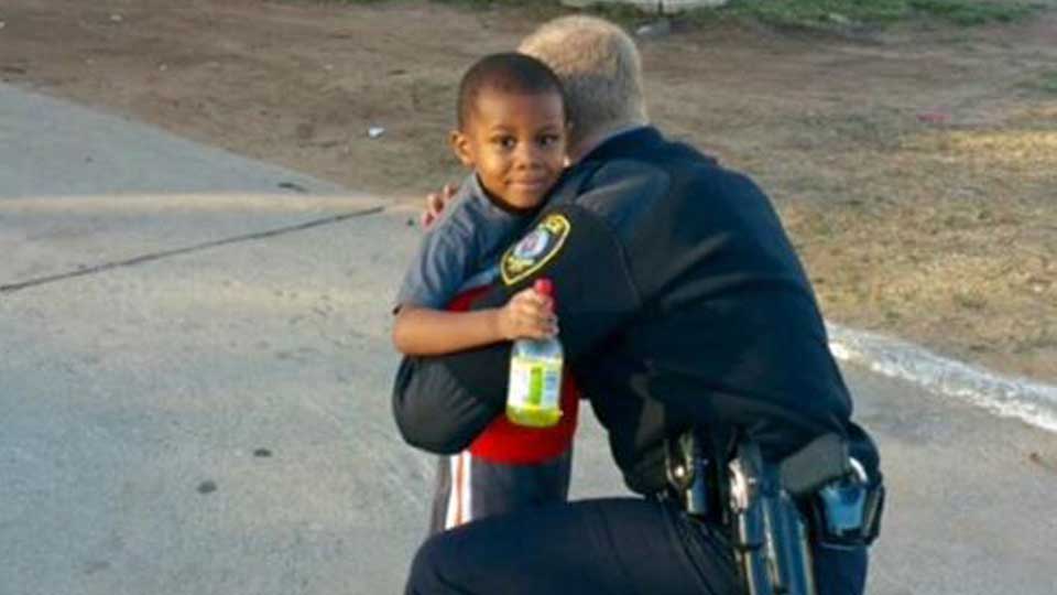 After the hug, the officer went on to play basketball with the boy and lose in a foot race.