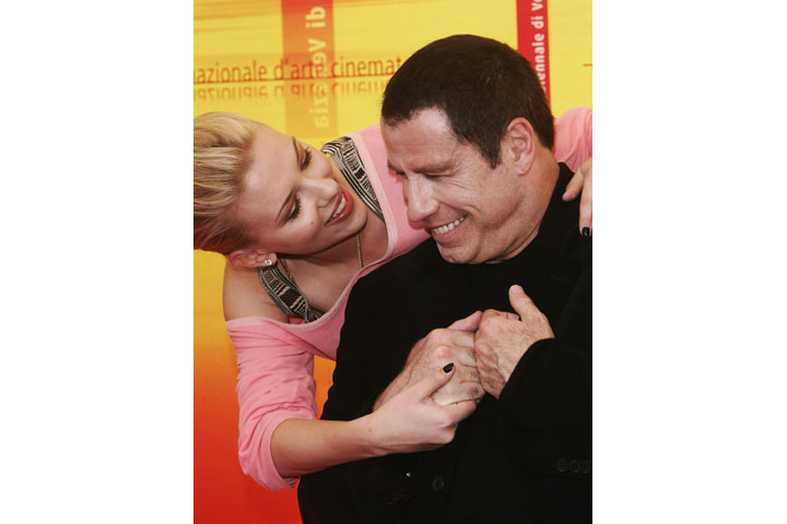 BELOW: More public displays of affection between John Travolta and Scarlett Johansson.