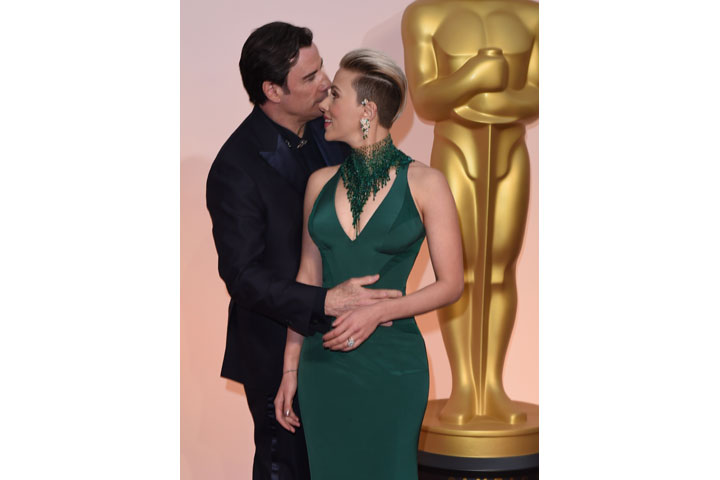 Travolta greeted Johansson at Sunday’s Oscars with a kiss and his arm around her waist. The photo has since been turned into an Internet meme, adding to an impression furthered by Travolta’s touching of Idina Menzel’s face while presenting at the Los Angeles ceremony.