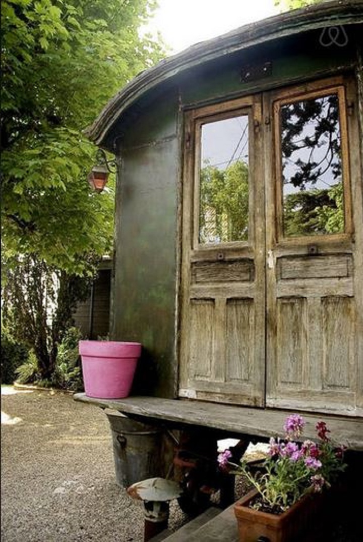 The gypsy car is located in a castle property and has access to the garden swimming pool. The hostess is a massage therapist and offers Californian massages.