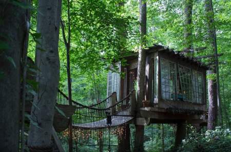 Could this be Neverland on Earth? Surprisingly located in the heart of Atlanta, Georgia, this tree house consists of three separate rooms. The living room, the bedroom and the deck are each connected by rope-bridges.