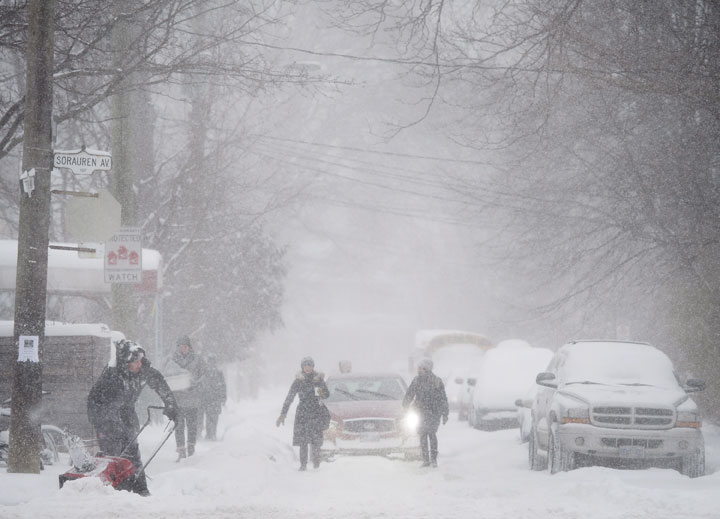 TORONTO – The persistent snow falling on Toronto made for a messy commute during the evening rush hour Tuesday.