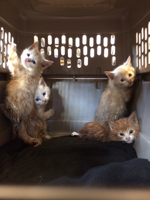 The four have had a bath and been dewormed, but it will be weeks before they can be spayed and neutered and finally adopted out.