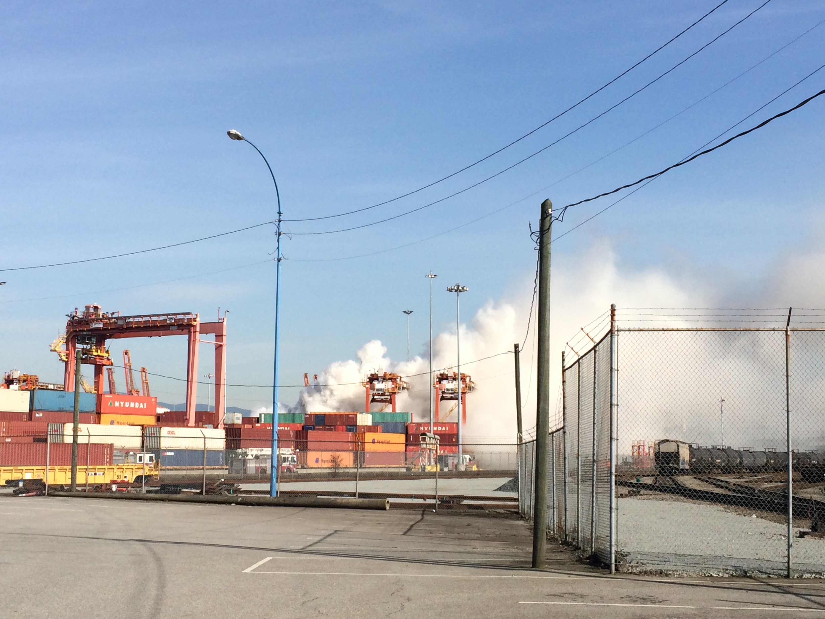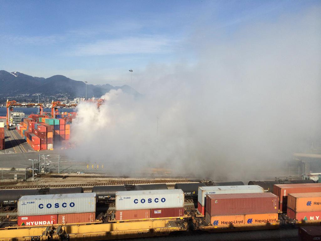 Two fireboats were dispatched to stage at the north end of Centennial Pier. By 6:30 p.m., Port Metro Vancouver said the fire was considered under control, as crews worked diligently to contain a blaze that could be seen throughout downtown and could be smelled for many miles to the east.
