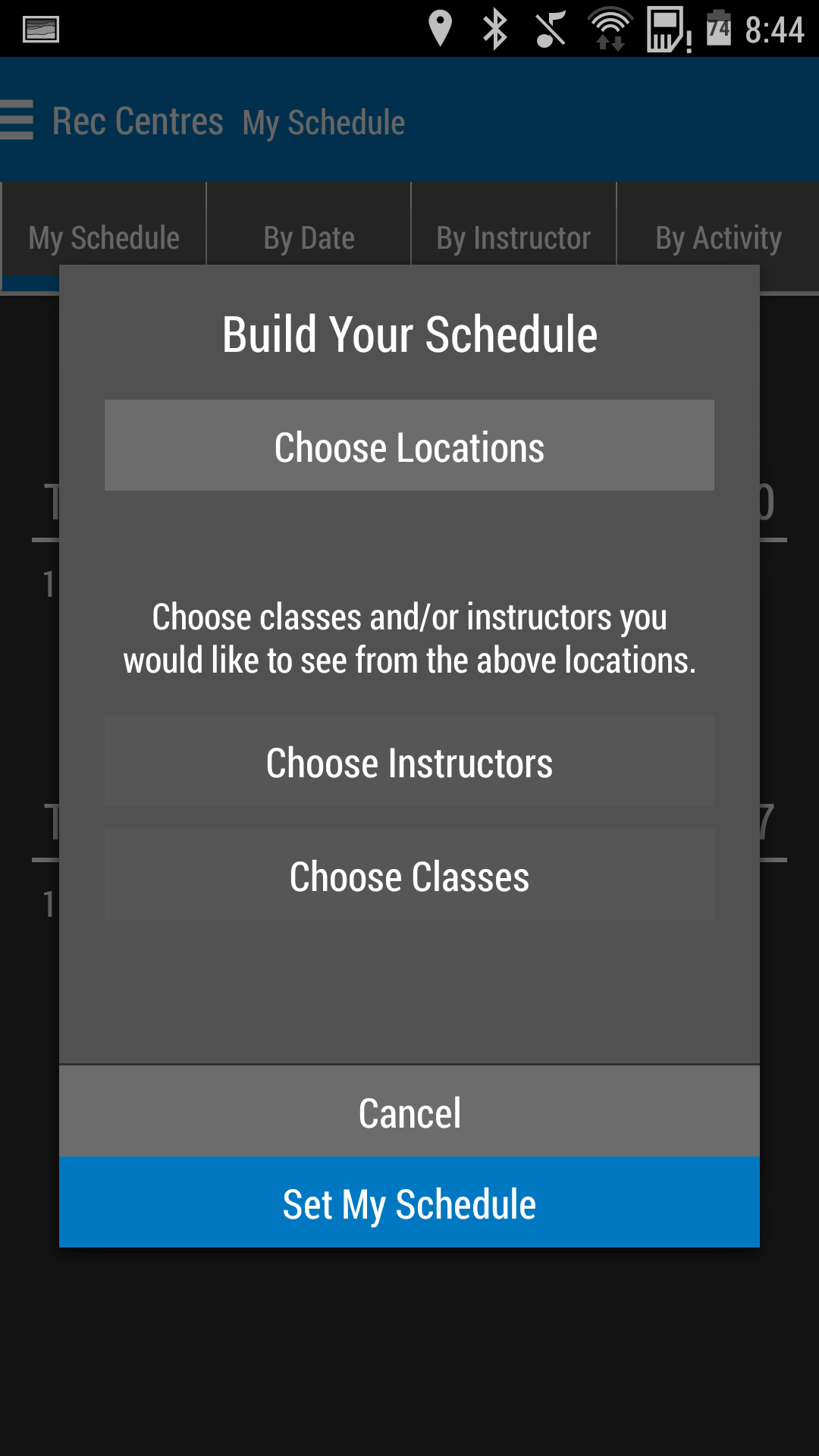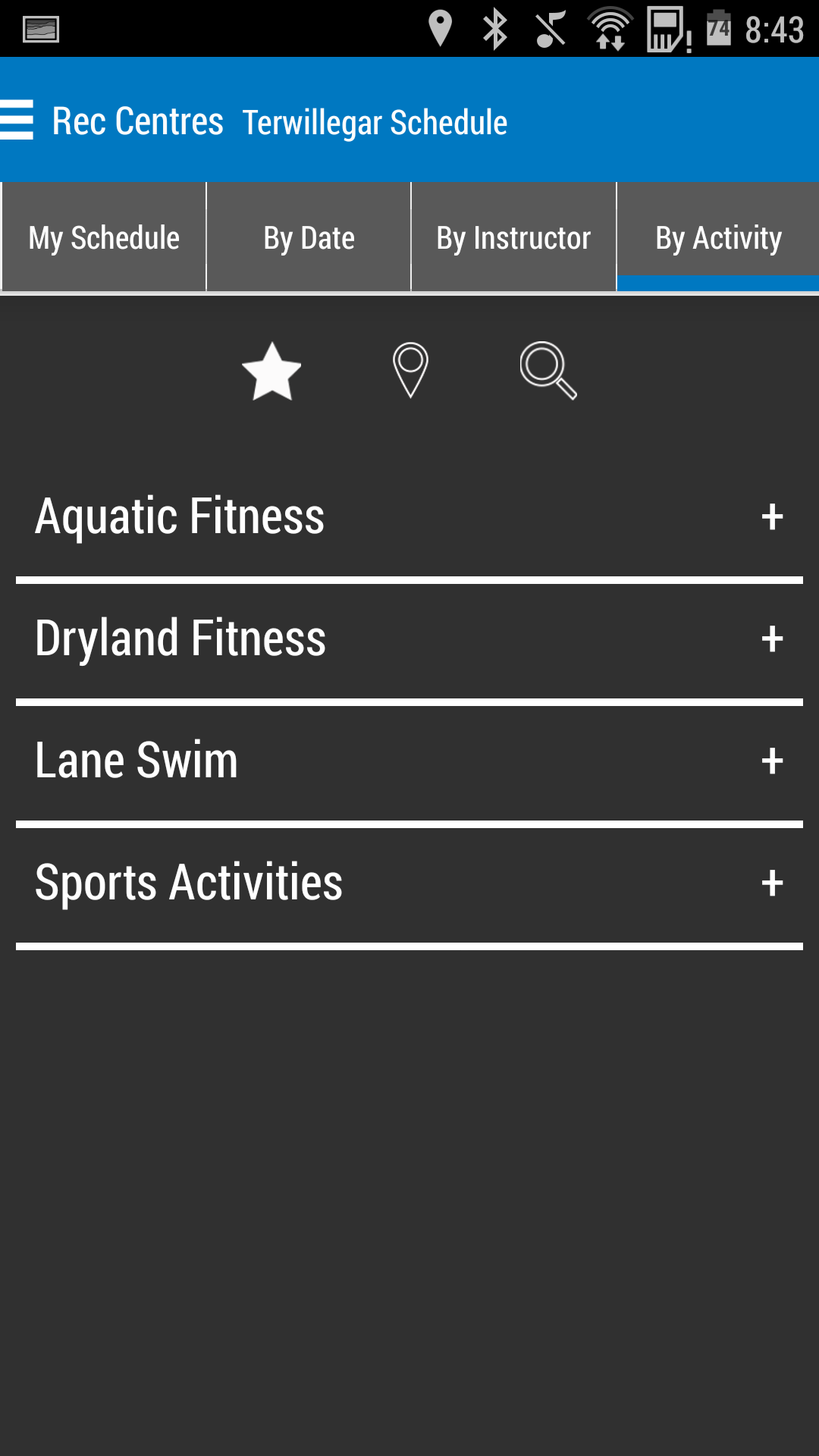 Users can view all available programs throughout the centre, or narrow their options down to instructor or activity. The activity category is further separated into aquatic fitness, dryland fitness, lane swim and sports activities categories.