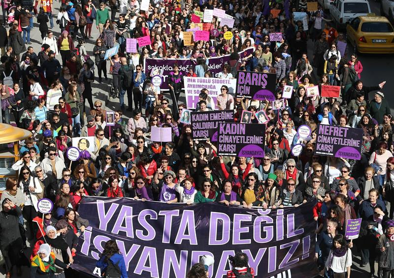 Demonstrations that took place in Istanbul, Turkey were dedicated to the death of 20-year-old Ozgecan Aslan, a student who was killed in February after resisting being raped by a bus driver. The killing prompted nationwide protests against the perceived failure by the Turkish government to prevent violence against woman.