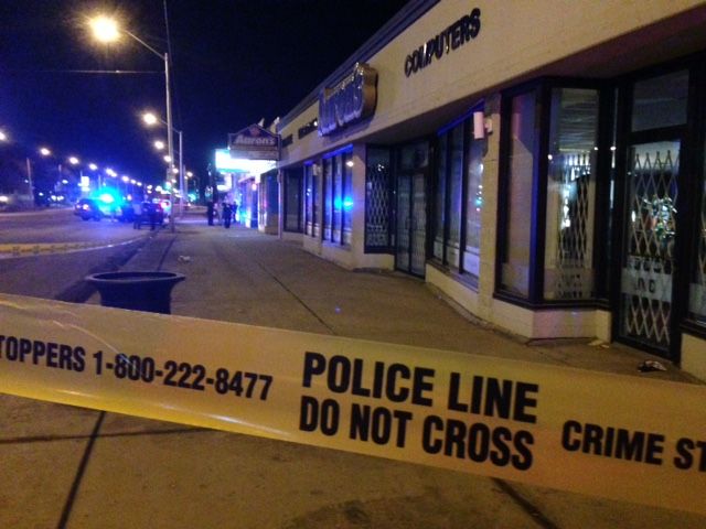 Police tape was put up around the sidewalk in front of several businesses, including the restaurant.