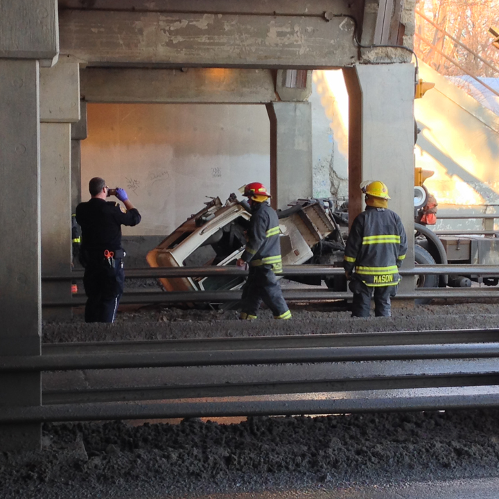 Paramedics took one person to hospital in unstable condition following the underpass collision at 8:30 a.m. Monday.
