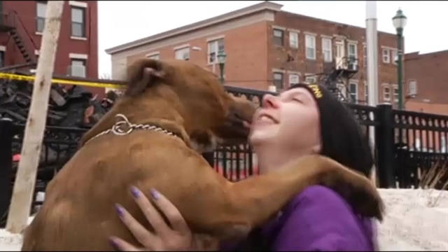 Together again: A New York woman is reunited with her dog eight days after a fire destroyed the building he was staying at