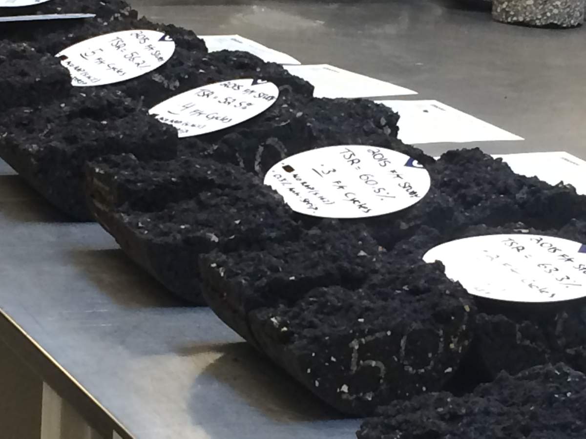 “Our study includes putting asphalt mix samples through multiple freeze/thaw cycles, then performing tests to see exactly how many cycles the samples can withstand before starting to deteriorate,” said Hugh Donovan, a Construction Services engineer.