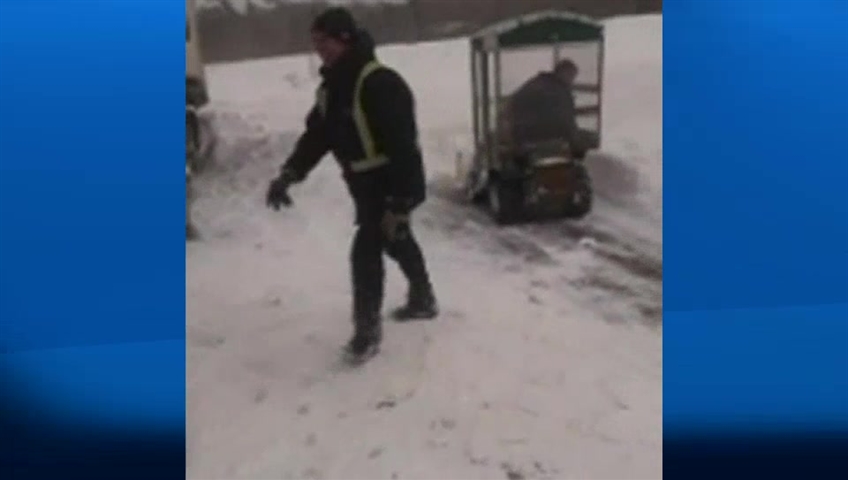 Global News viewer Michelle Bland was able to capture an extraordinary sight on video — she and her husband helping to dig out cars and trucks that were stuck on the highway.