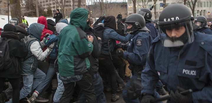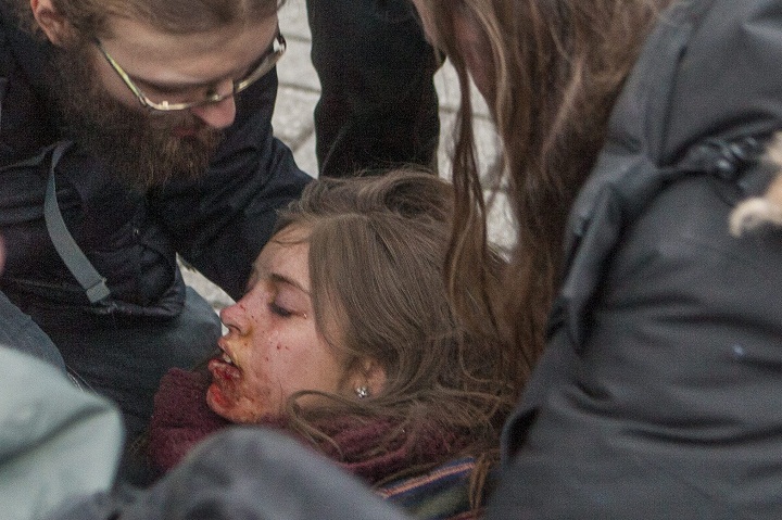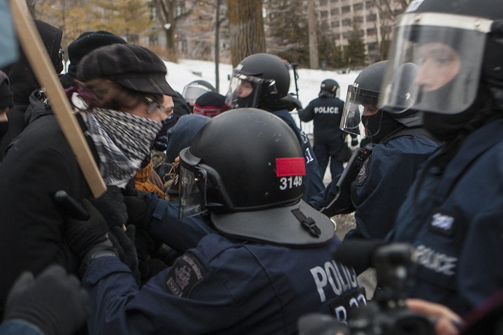 An 18-year-old post-secondary CEGEP student was seriously injured after she was hit in the face with part of a tear gas canister.
