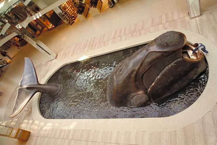 The art installation was removed five years ago when Victoria’s Secret came to the mall. The water feature was filled in and soft seats installed. At the time mall Spokeswoman Sheri Clegg said the whale would be reintroduced in a different spot, and this week it was brought out from storage.