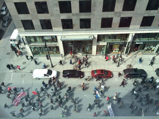 Nearly 1200 teachers from UQAM joined the day of demonstrations, after failing to reach a collective bargaining agreement.