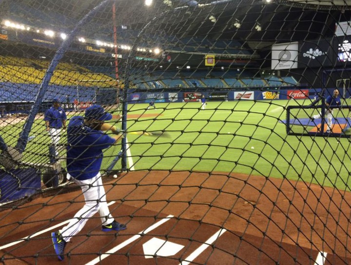 The Toronto Blue Jays were taking on the Cincinnati Reds in a friendly pre-season game played at the Olympic Stadium in Montreal.