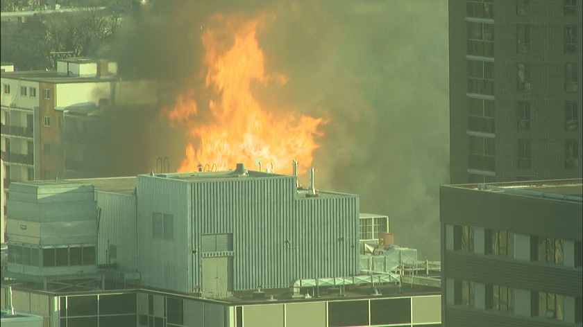 WINNIPEG — Fire crews battled a blaze in a downtown apartment block Monday evening.