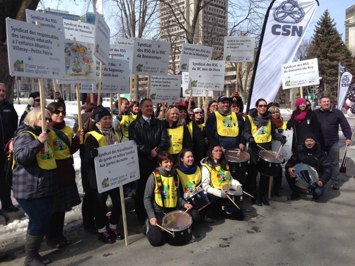 Daycare operators demanded a 5 per cent pay increase to match what CPE workers earn; the government offered them half a per cent, the equivalent of 14 cents per day per child, said Lucie Longchamps of the FSSS-CSN.