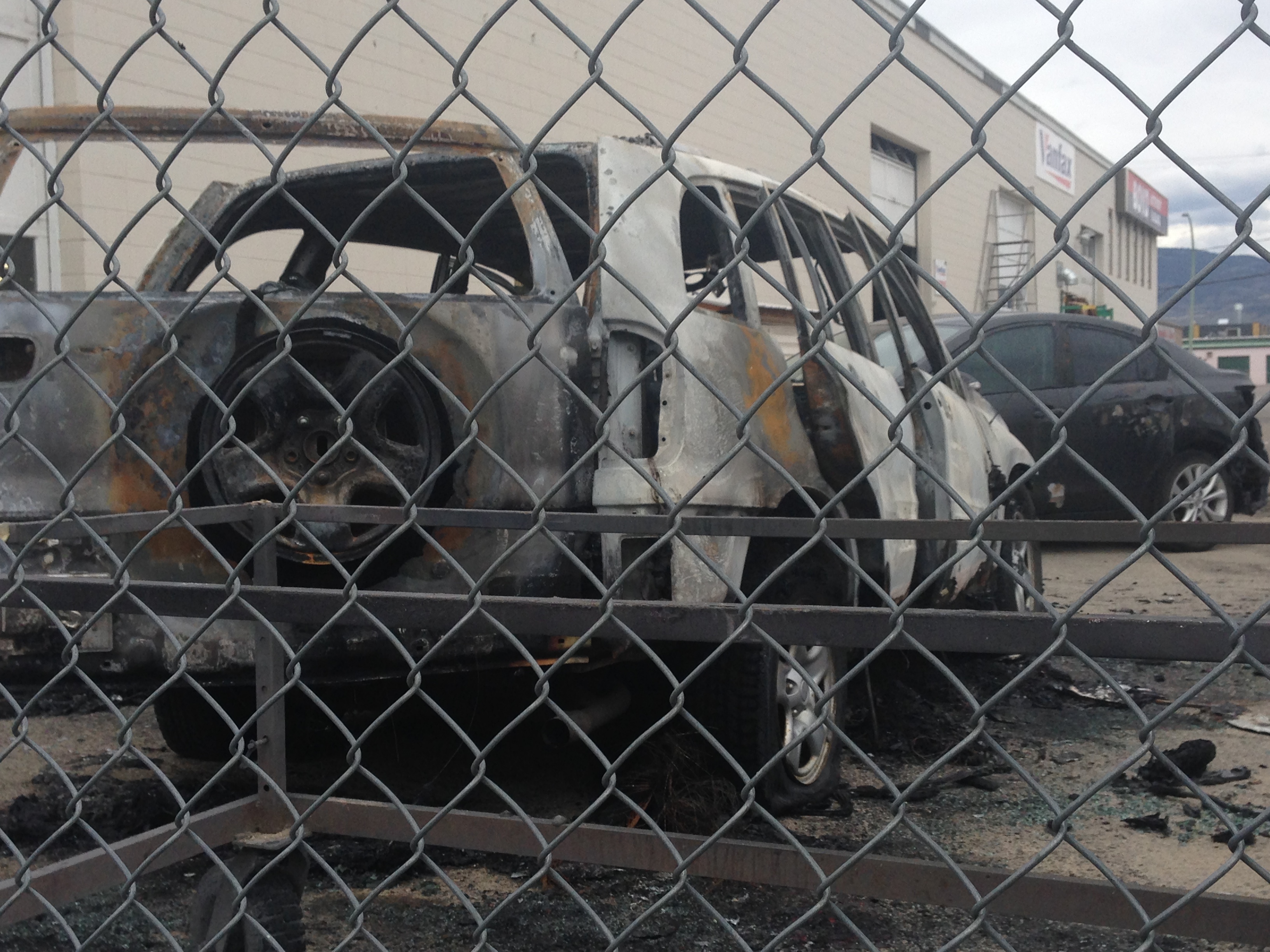 KELOWNA – Two car fires in Kelowna early Friday morning are being deemed as arson by RCMP. Corporal Joe Duncan says one of the blaze’s was at Boyds Autobody and Glass in the 1900 block of Dayton Street. He says the Kelowna Fire Department (KFD) notified police of that fire shortly before 3 a.m.