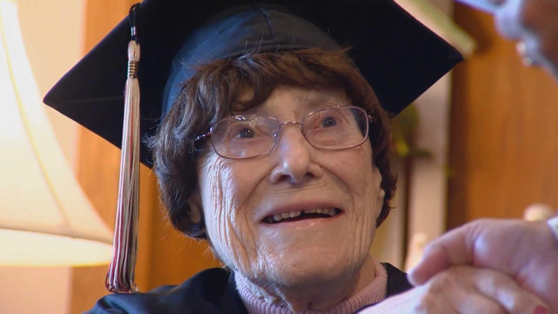 Centenarian Marie Hunt received her high school diploma Friday after dropping out of school 87 years ago to help take care of her eight younger brothers and sisters.