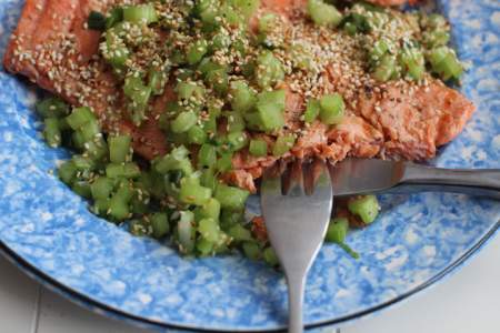 GRILLED COHO SALMON WITH SESAME CELERY RELISH
