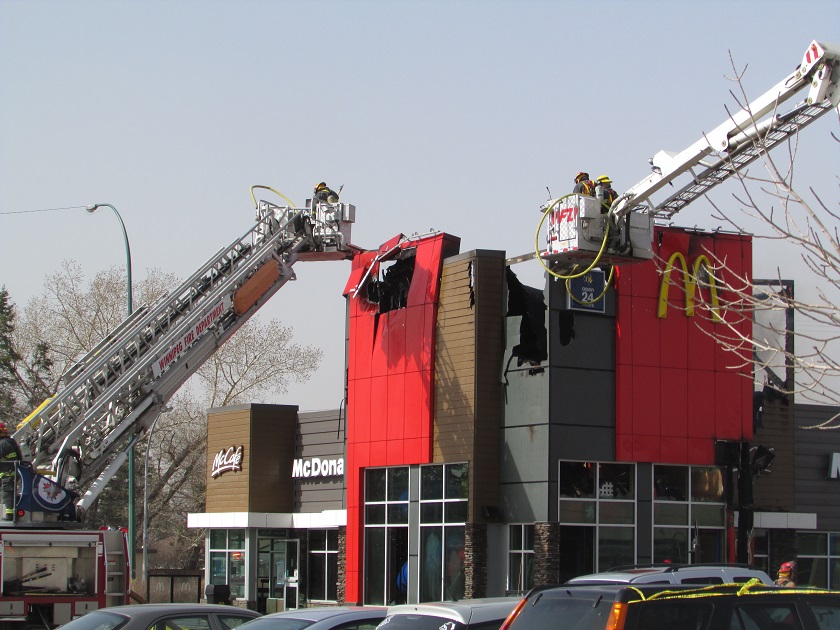 WATCH ABOVE: Winnipeg fire crews battle McDonald’s blaze