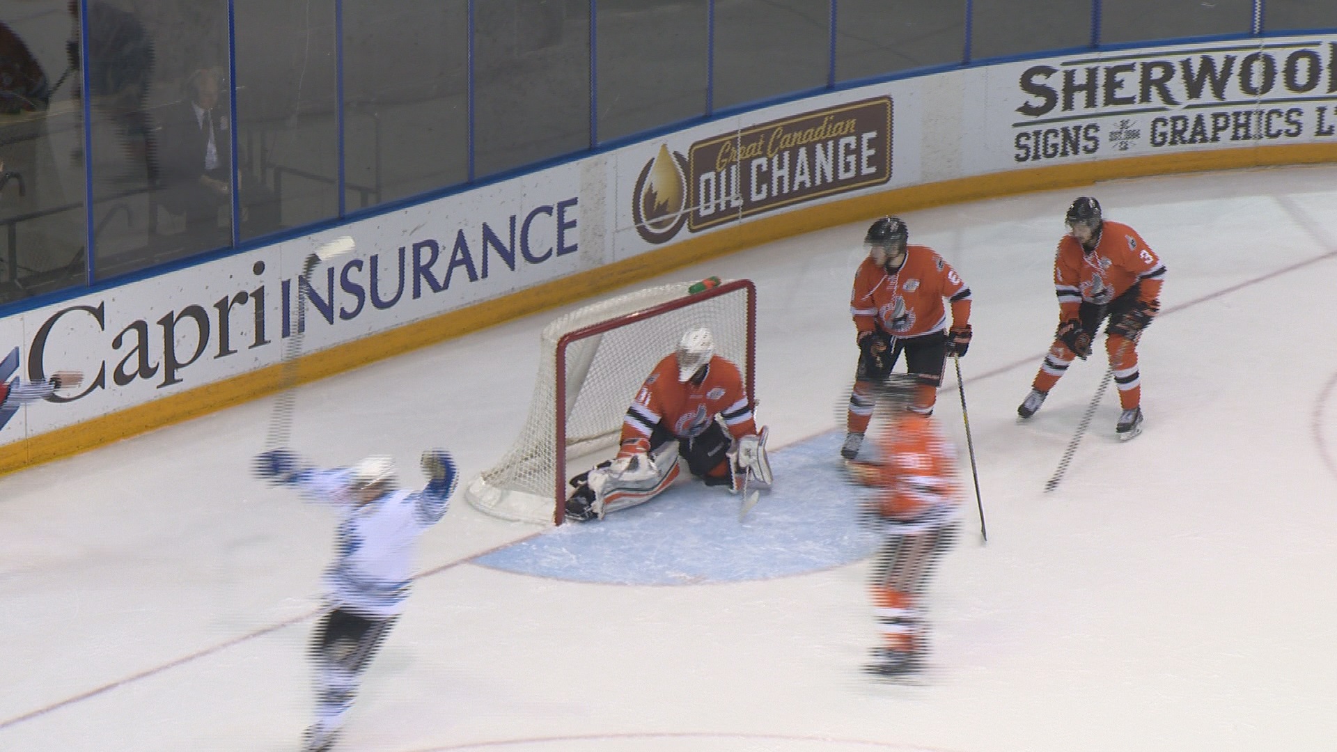 Cam Amantea made a bee line down the right side and closed the gap for the Vees with just over eight minutes to go.