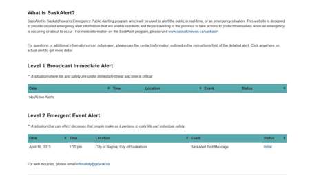 “SaskAlert can provide critical information about emergency situations as they are developing so residents of the affected area will be able to take action to protect themselves, their families and property,” said Jim Reiter, the government relations minister.
