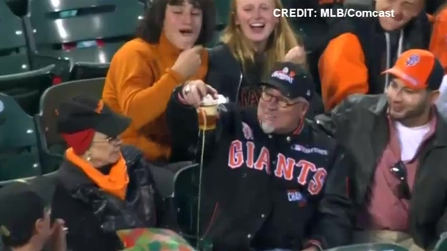 It’s landing spot? Another gentleman’s beer, of course. And in keeping with tradition, the unknown Giants fan proceeded to chug his cup of suds, though he received some “flack” on social media for not finishing his brew.