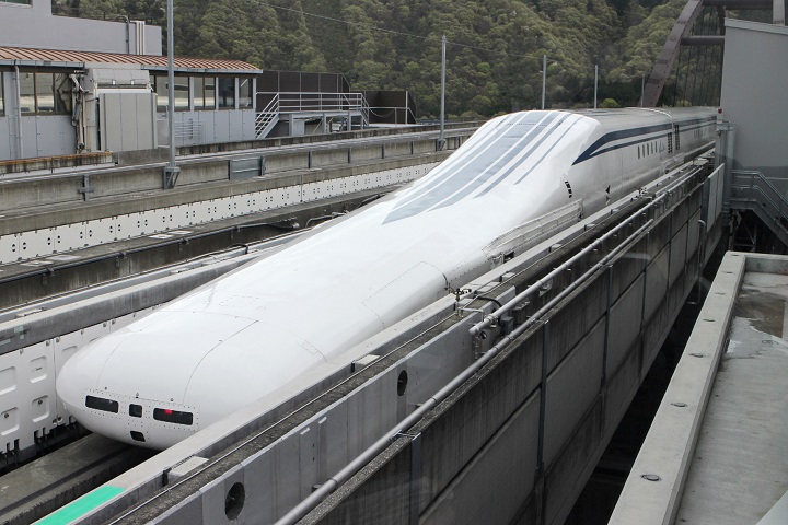 The Maglev Test Line, near Mount Fuji about 80 kilometres (50 miles) west of Tokyo, is developing technology for use on a future link between Tokyo and Osaka. The magnetic levitation trains hover above rails, suspended by powerful magnets.