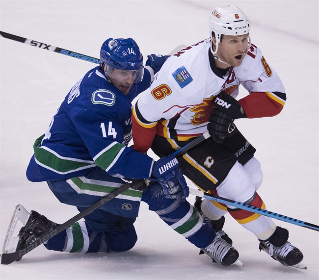 Vancouver had recalled former Flames first-round draft pick Sven Baertschi from the AHL prior to Burrows’ injury. Baertschi skated in pre-game warmup, but didn’t play.