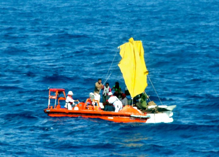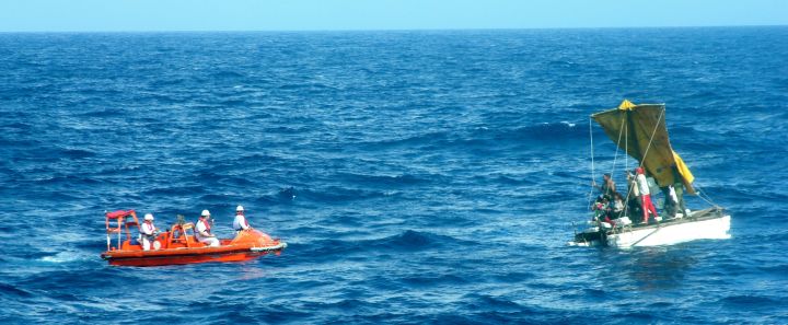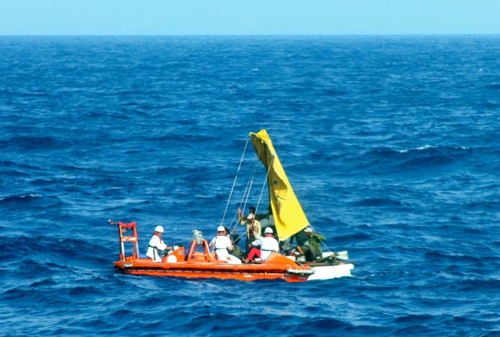 After noticing the people on the raft the ship’s captain decided to alter the vessel’s course to see if they were in distress.