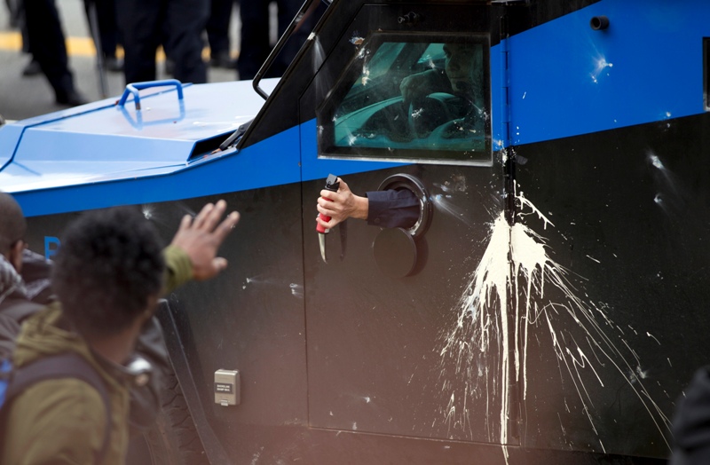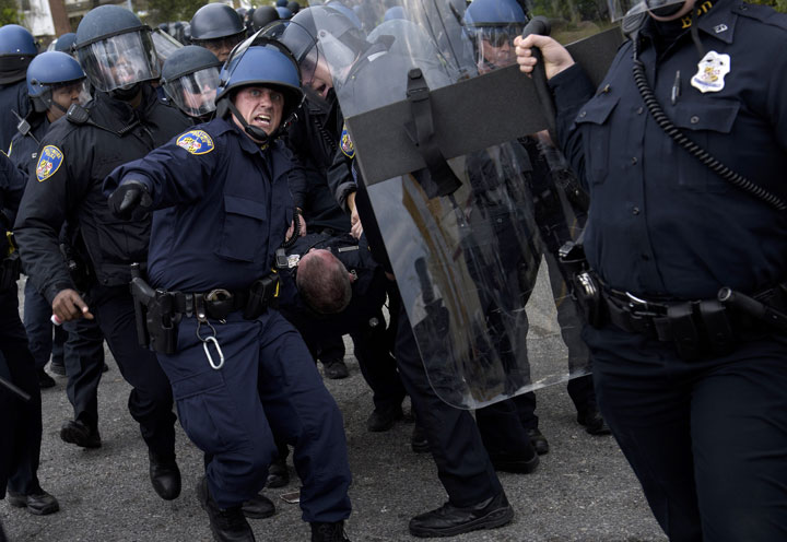 The clash came after a day of high tension but relative peace in Baltimore, which was rocked by looting and widespread arson Monday in the city’s worst outbreak of rioting since 1968.