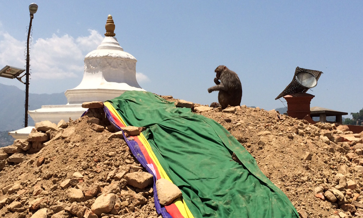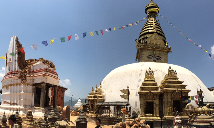 Swayambhunath temple, which dates back to the 5th century, is one of at least 68 cultural heritage sites in Nepal that were damaged, according to UNESCO.