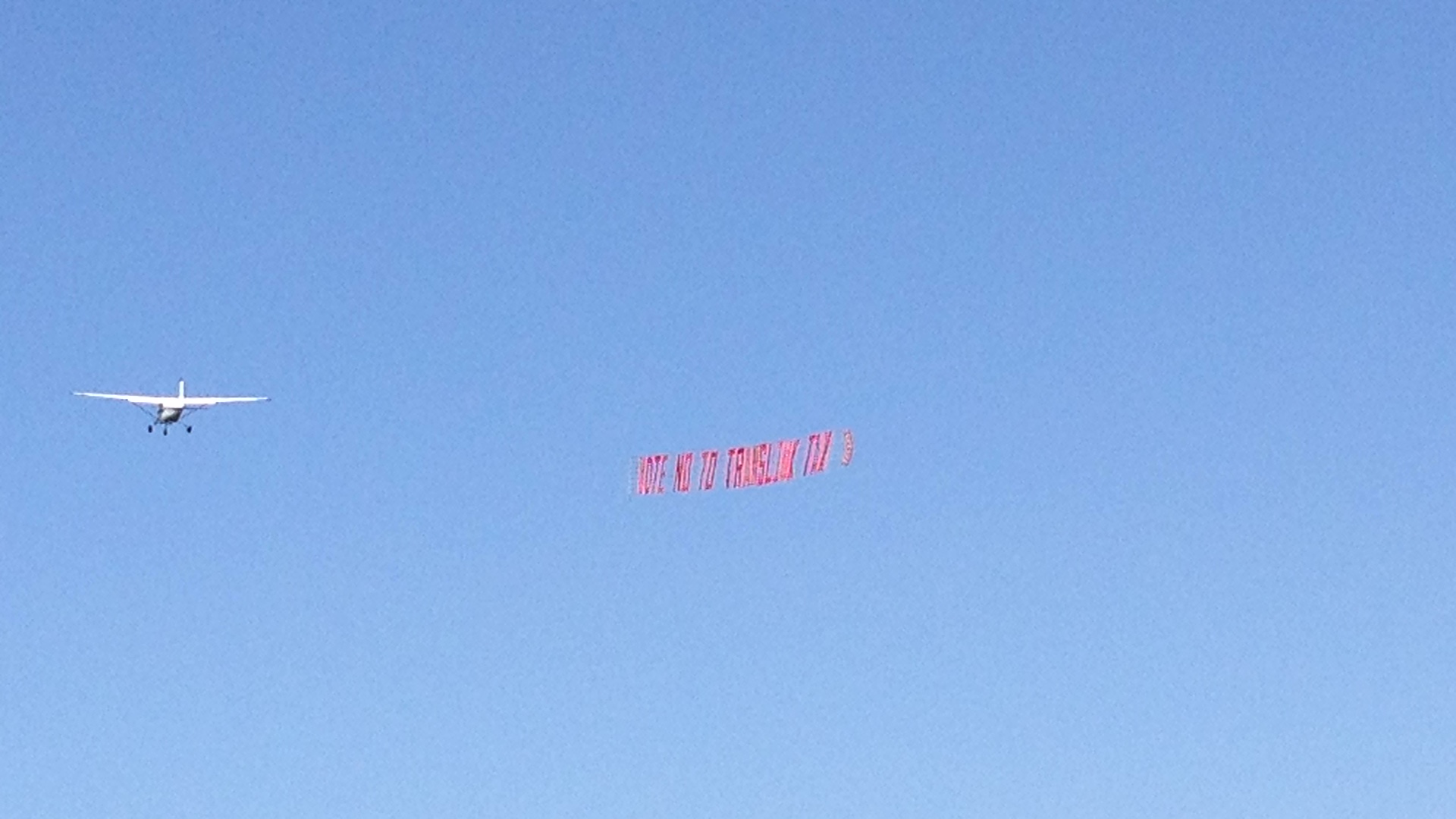 And with less than a month left to vote, the “no” side took to the skies today to get their message across to last-minute voters. They flew a banner with the message, “vote no to Translink tax.”