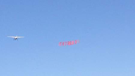 “I hope this banner will help and hopefully we can get a little bit more flight time next weekend as well and make an impact,” pilot Chuck Rebstein told Global News.