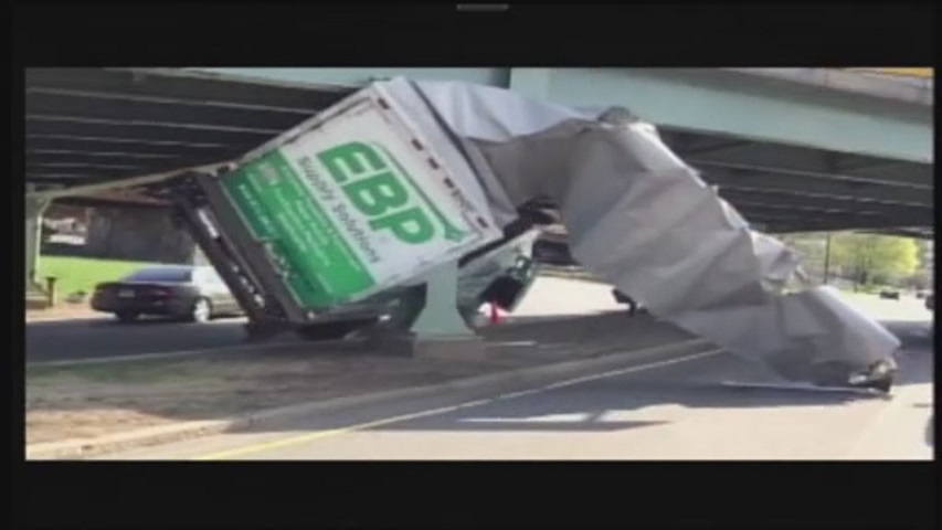 According to the Boston Globe, the truck was 7 metres long and too tall for the 3-metre clearance height under the overpass.