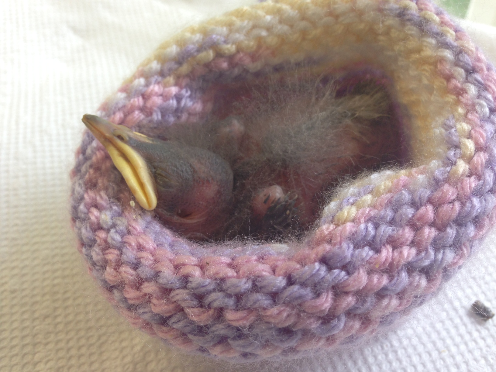 “A lot of people don’t realize that baby birds don’t leave the nest flying,” she says. “They think it’s a bird so it’s going to fly out of the nest, but in fact they tumble out of the nest, land on the ground and they stay there — some birds — up to two weeks.”