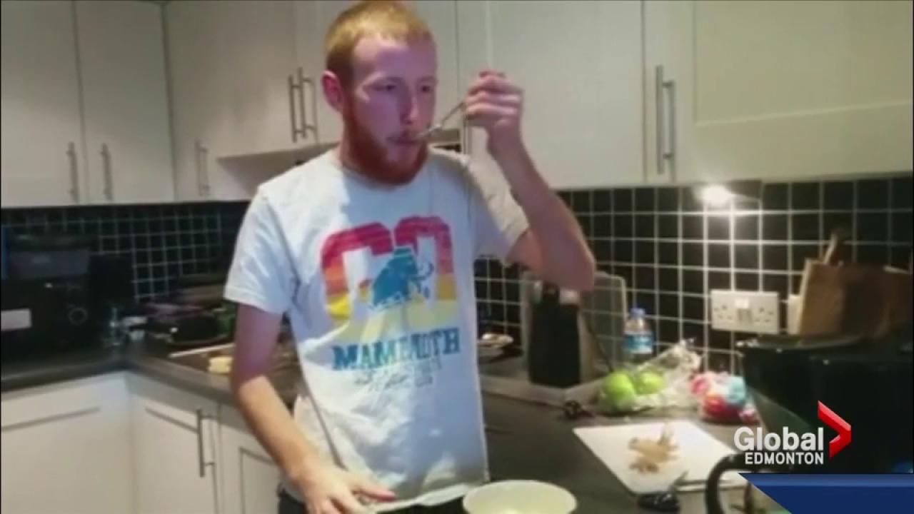 WATCH ABOVE: An Edmonton man living abroad was forced to eat his words — or in this case, his hat — after his friend became the youngest MLA elected to the Alberta Legislature. Jessica Kent has the story.
