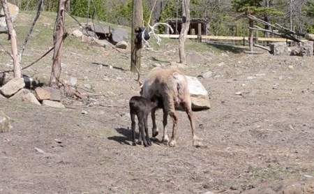 Since the birth of the two caribou babies the weekend before last, the health of the two calves has been carefully monitored by the animal care team.