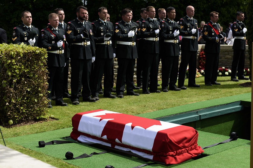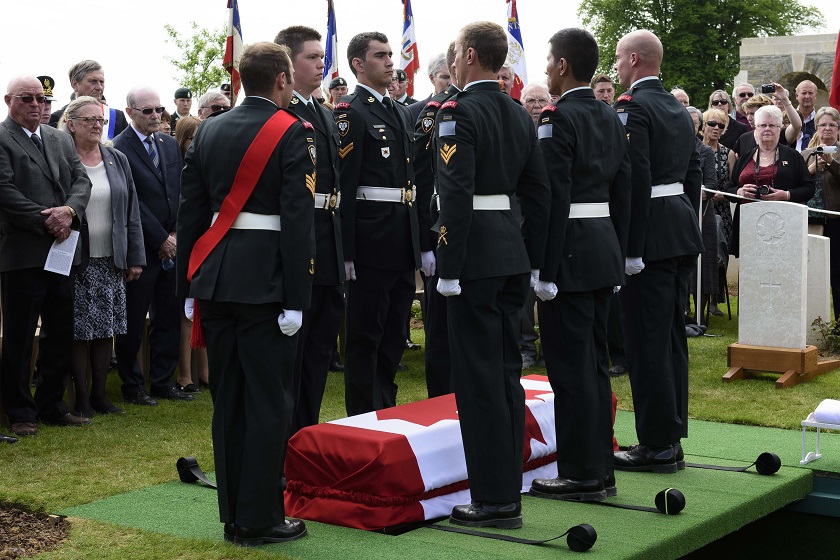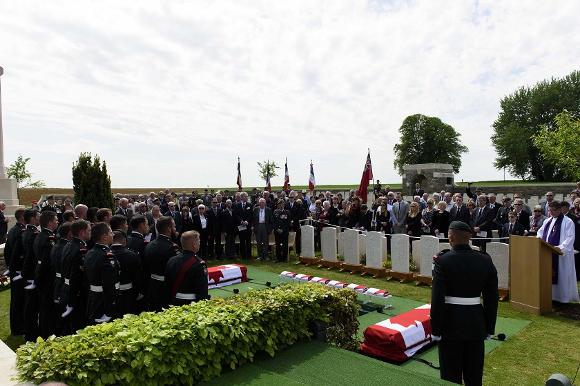 WINNIPEG – Eight men killed Aug. 11, 1918, during the First World War battle for Hallu, France, were buried with military honours at Caix British Cemetery in France on Wednesday.