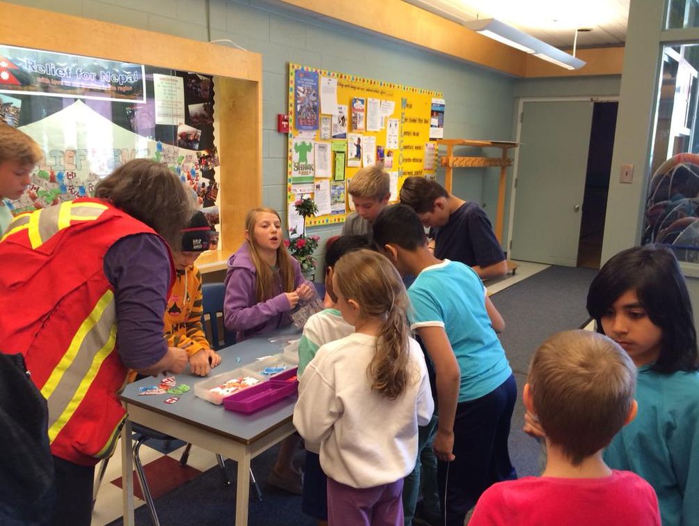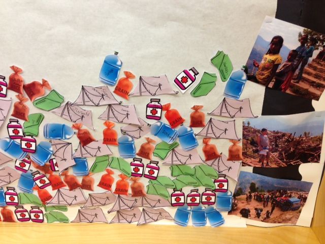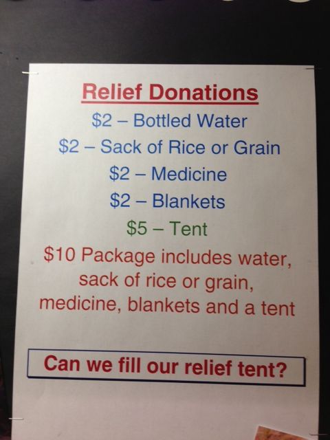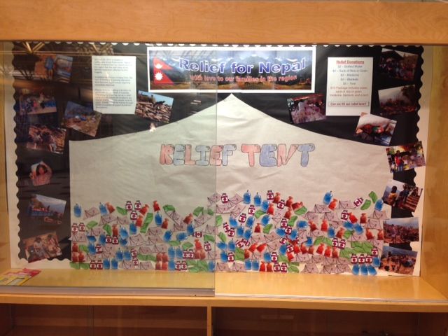 The students set up a mock relief tent and collected donations for items like food supplies and water.