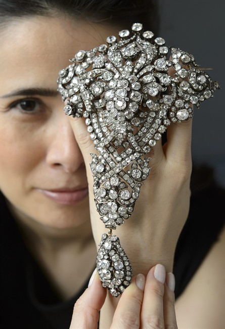 There was no buyer for a large brooch dubbed the “Maria Christina Royal devant-de-corsage.” It was presented by King Alfonso XII of Spain to his wife, the Archduchess Maria Christina of Austria, on their wedding day in November 1879.