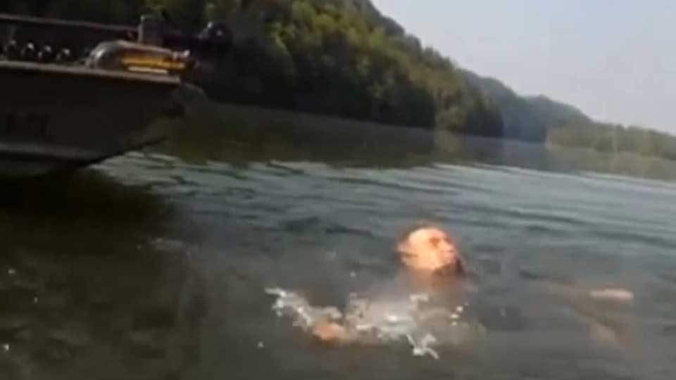 “I don’t even swim,” Ray could be heard saying as he caught his breath. “It’s something I need to learn.”