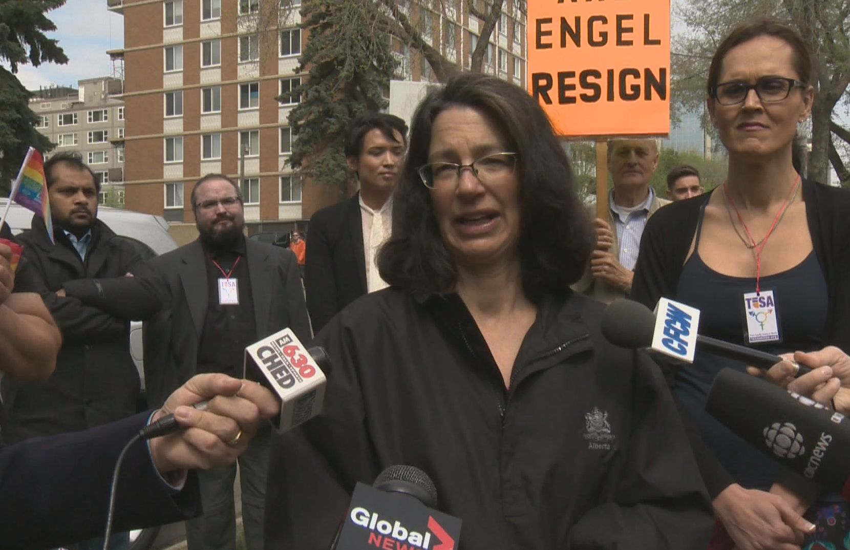 EDMONTON — Supporters of an outspoken Edmonton Catholic School Board trustee held a rally Friday afternoon at the district office.