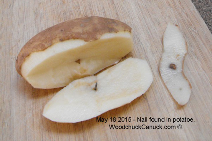 On May 20, Barringon RCMP were alerted to a similar incident by a store manager from the local No Frills grocery store, who told them a nail had been found in a Farmer’s Market potato.