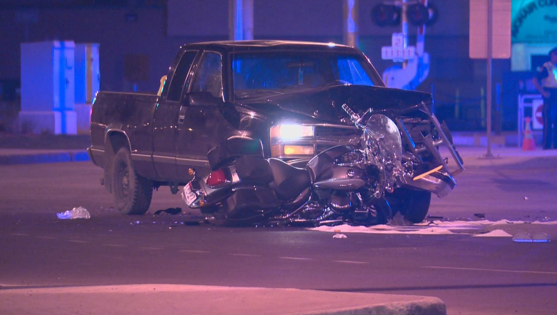 A truck and a motorcycle collided at the intersection of Princess Elizabeth Ave & 106 St. Near NAIT in Edmonton on Thursday night. May 21, 2015.